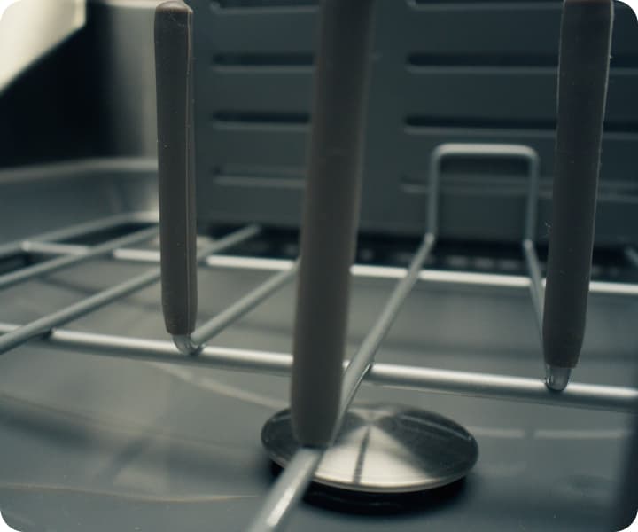 Large capacity, complete with cup and utensil holders, handles all your dishes — even extra-large wine glasses.