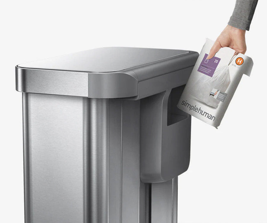 Store liners in the liner pocket, pull a fresh liner out from inside the can, and close the liner rim to hide the liner and keep it in place.