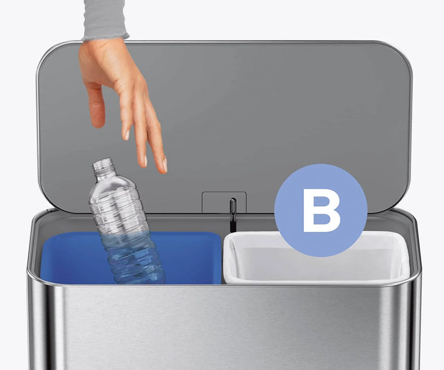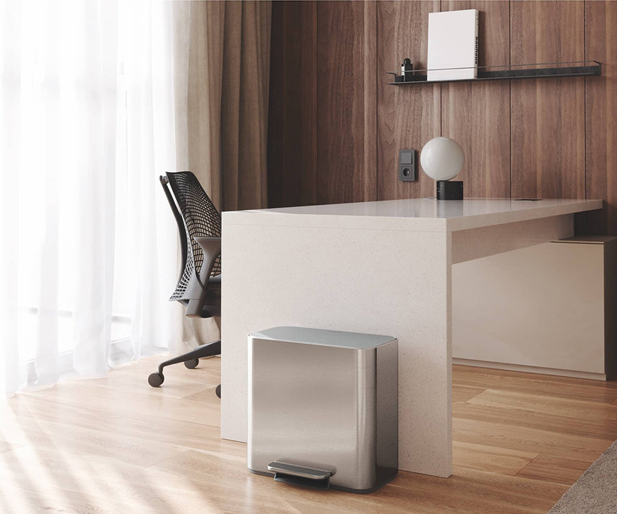 Designed for hotel rooms, home offices or small spaces, our mini recycler step can has dual compartments that are perfect for daily trash and recycling.