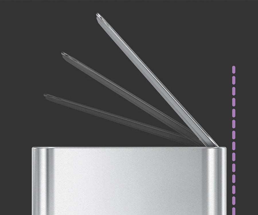 The strong pedal is engineered to last over 150,000 steps — that's more than 20 steps a day for 20 years — and our patented lid shox technology controls the motion of the lid for a slow, silent close.