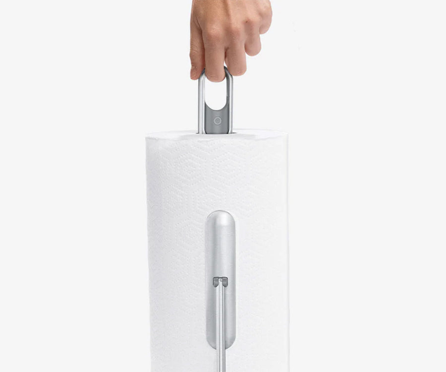 Hook the finger loop and take our paper towel holder pump wherever the mess is. A downward push unlocks the pump for quick access when you need it.