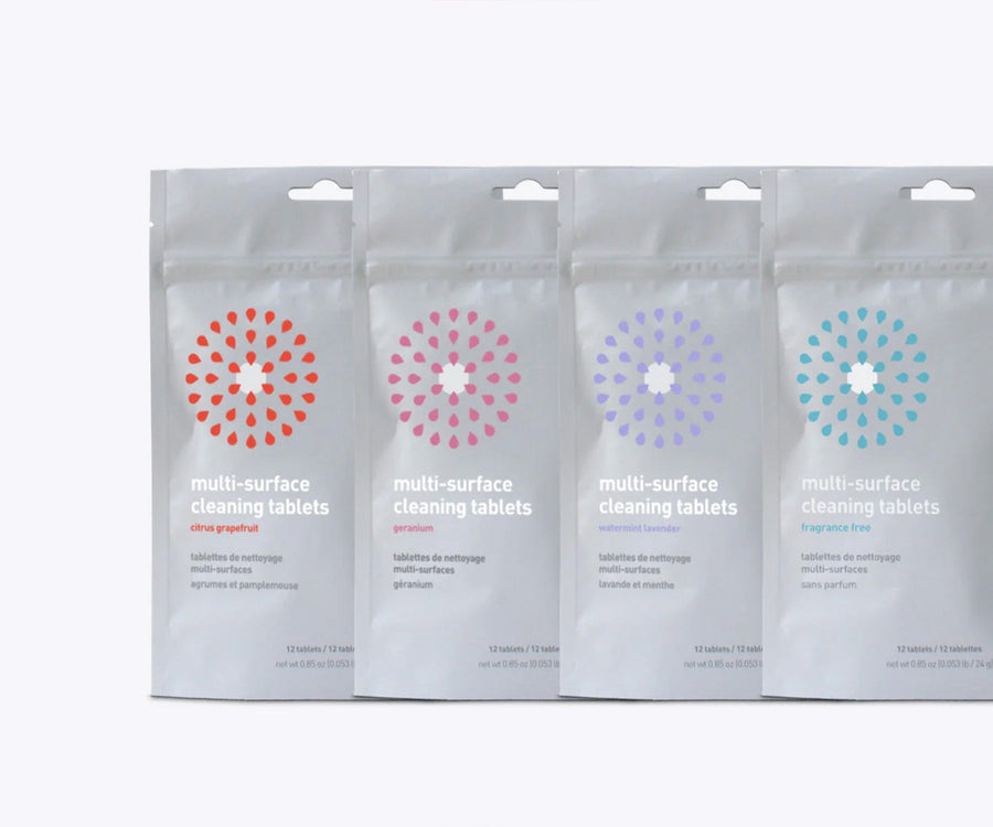 Tough on grease and grime, our specially formulated cleaning tablets completely dissolve in water to make a powerful multi-surface cleaner that is also safe for all household surfaces. One cleaning tablet makes 6 oz of cleaner — exactly how much our paper towel pump holds!