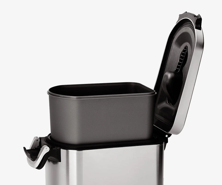 The large ergonomic handle clamps the lid closed with one smooth motion and locks it shut to prevent pets from opening the lid.