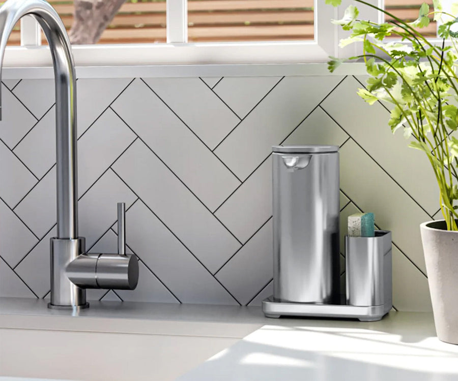 Give your pump and sponge a well-designed home with our stainless-steel sponge caddy. Keep the busy sink area clutter-free.
