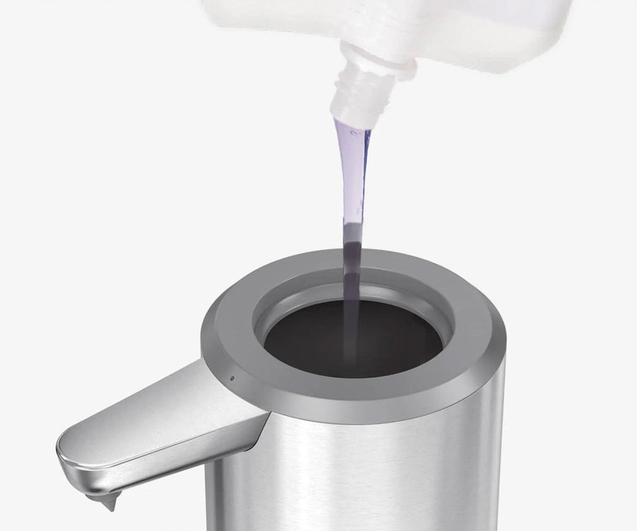 soap compatibility: simplehuman liquid soap + liquid soap without exfoliants + hand sanitizer