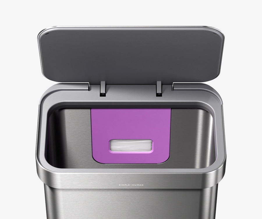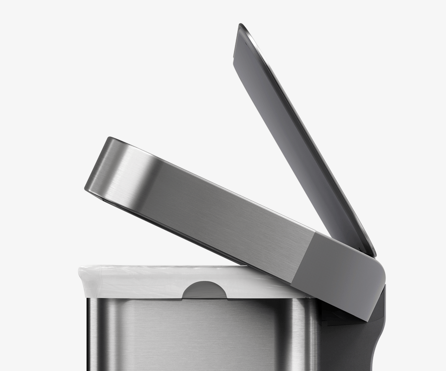 Our liner rim system makes trash faster and neater. Simply lift the lid for easy access, then close it to keep the liner tidy and out of sight.