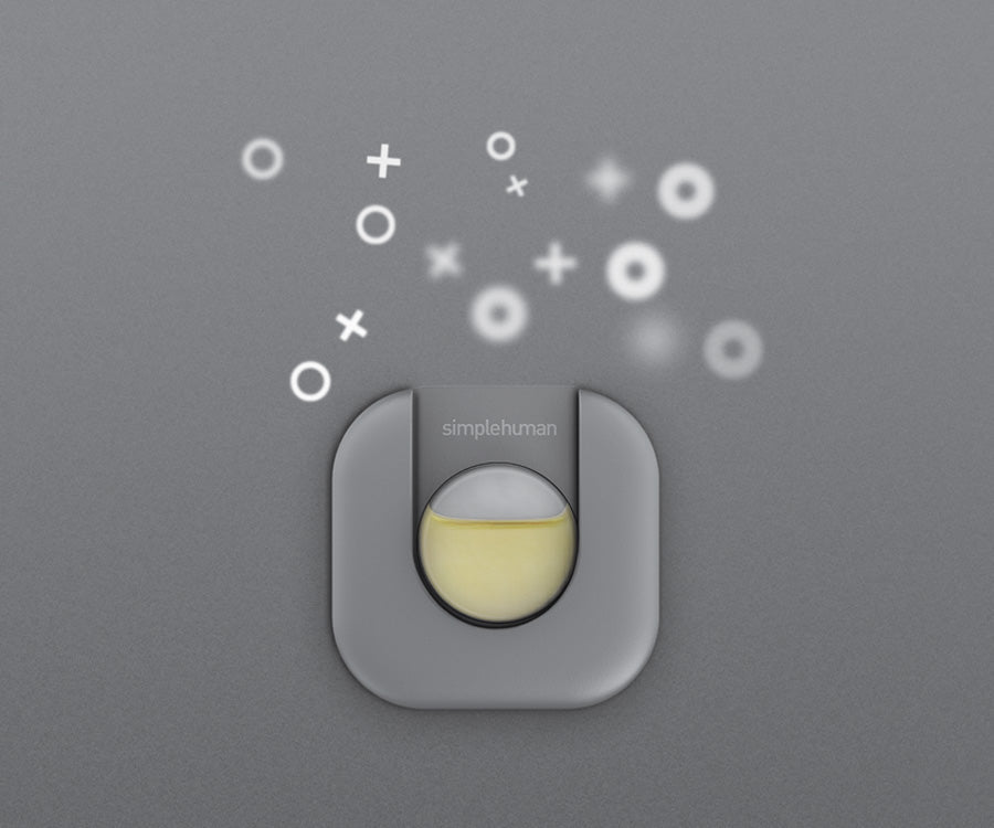 Our all-natural odorsorb pod fits discreetly under the lid of your Simplehuman can to eliminate trash odors.