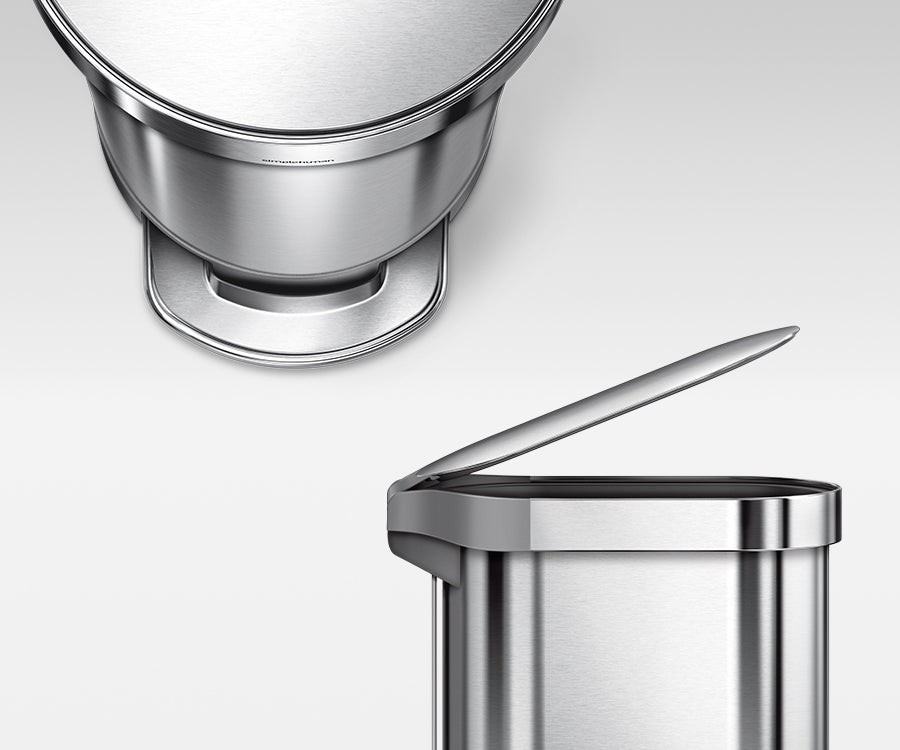 Our strong steel pedal is engineered to last over 150,000 steps — that's more than 20 steps a day for 20 years — and our patented lid shox technology controls the motion of the lid for a slow, silent close.