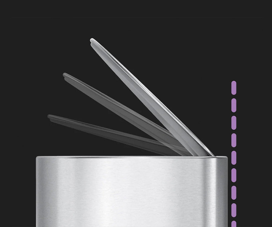 The strong pedal is engineered to last over 150,000 steps — that's more than 20 steps a day for 20 years — and our patented lid shox technology controls the motion of the lid for a slow, silent close.