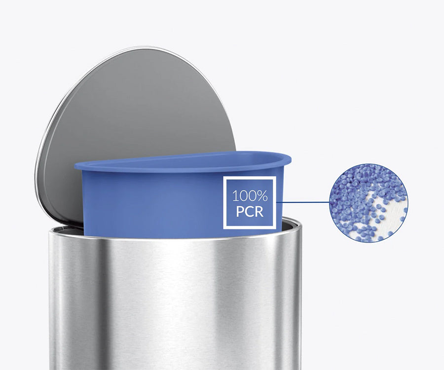 Made from 100% post-consumer recycled plastic, the inner bucket lifts out for quick liner changes and easy cleaning.