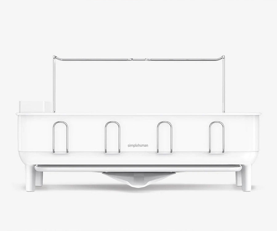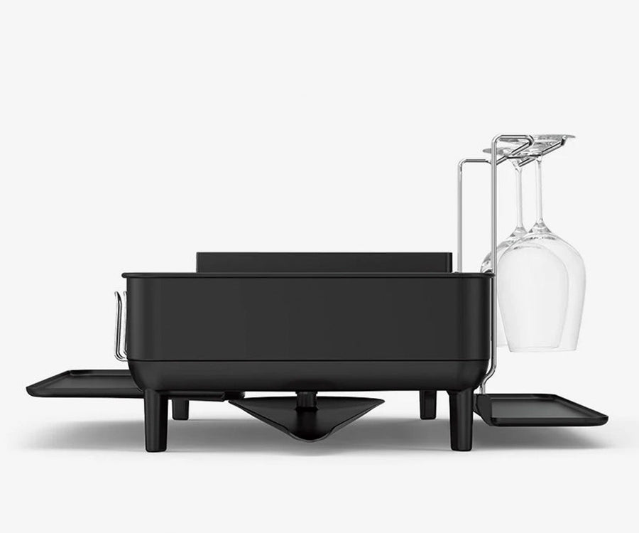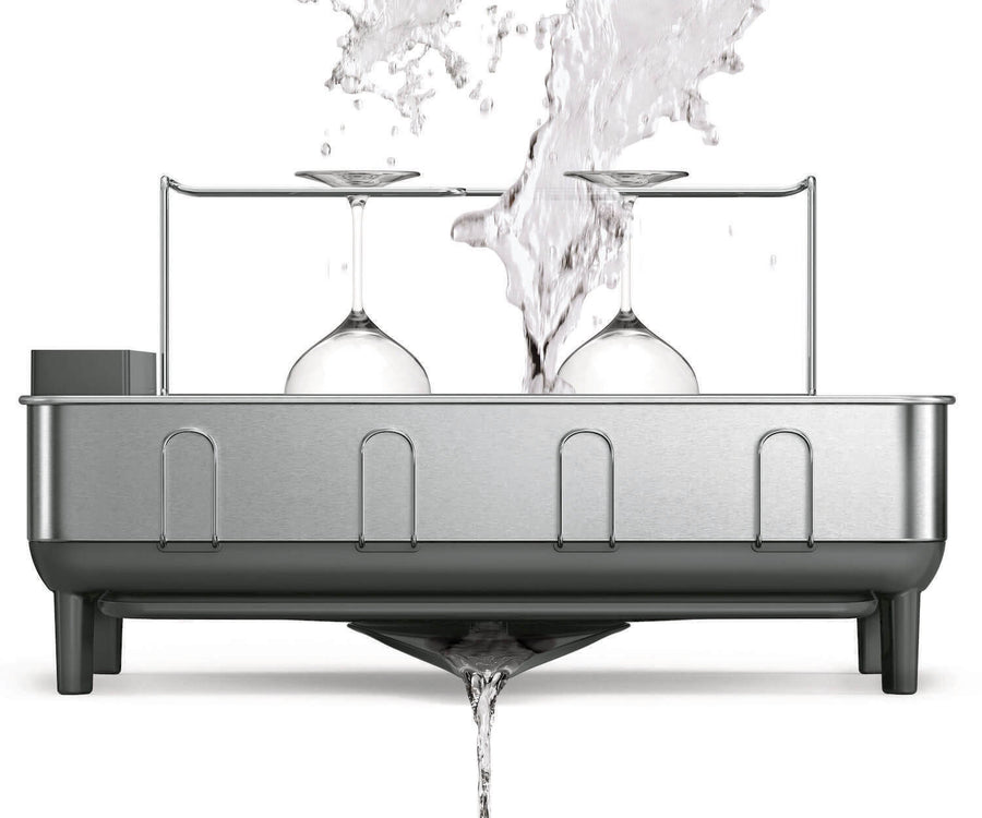 Got a lot of dishes and extra-large wine glasses? Our steel frame dishrack has enough capacity to handle it — and with silicone-capped plate holders, your dishes are always safe and secure — no scratching or chipping.