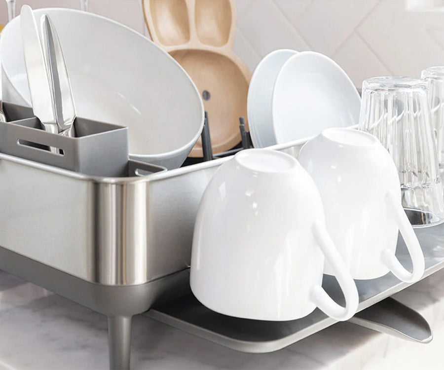 We lowered the profile and added anti-slip rubber feet to give this dishrack greater stability so it stay in place on your countertop.