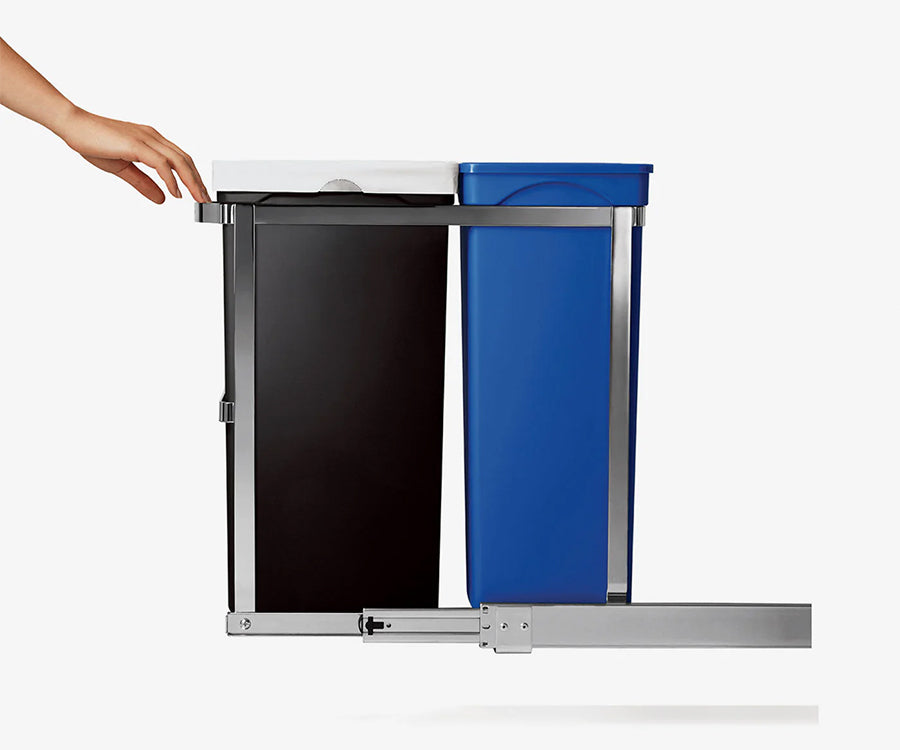 Our pull-out can is engineered for years of use. This trash can has a tough all-steel frame and glides fully out of the cabinet on smooth commercial-grade ball-bearing tracks for quick and easy access.