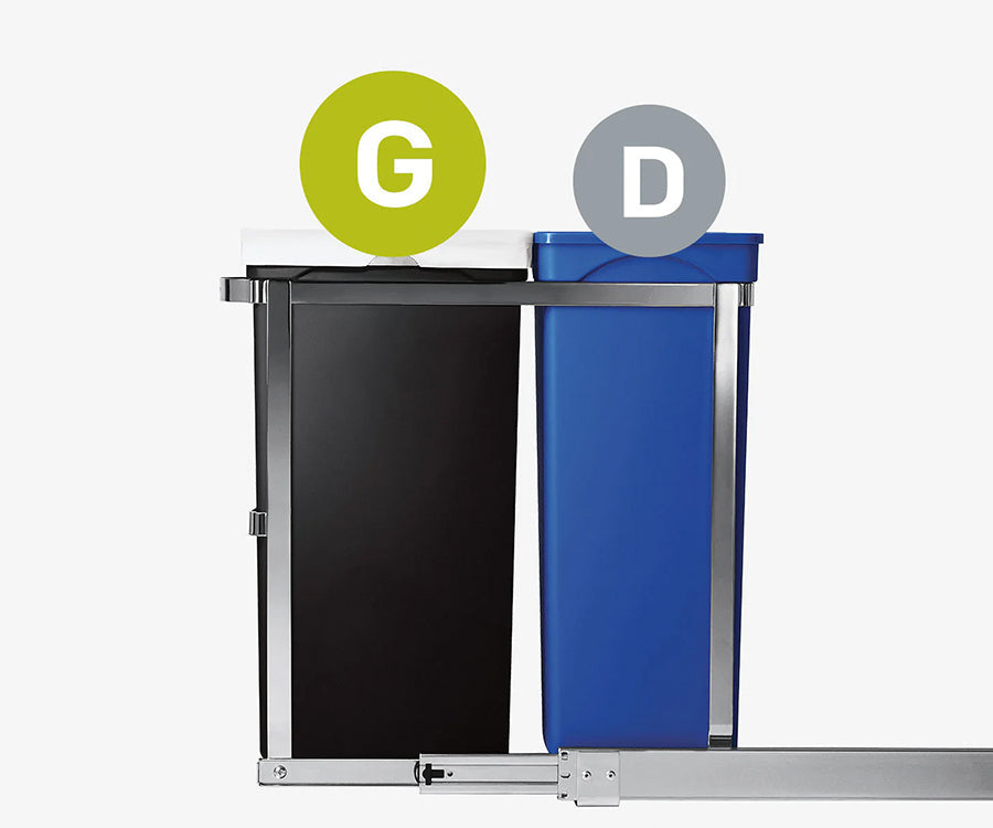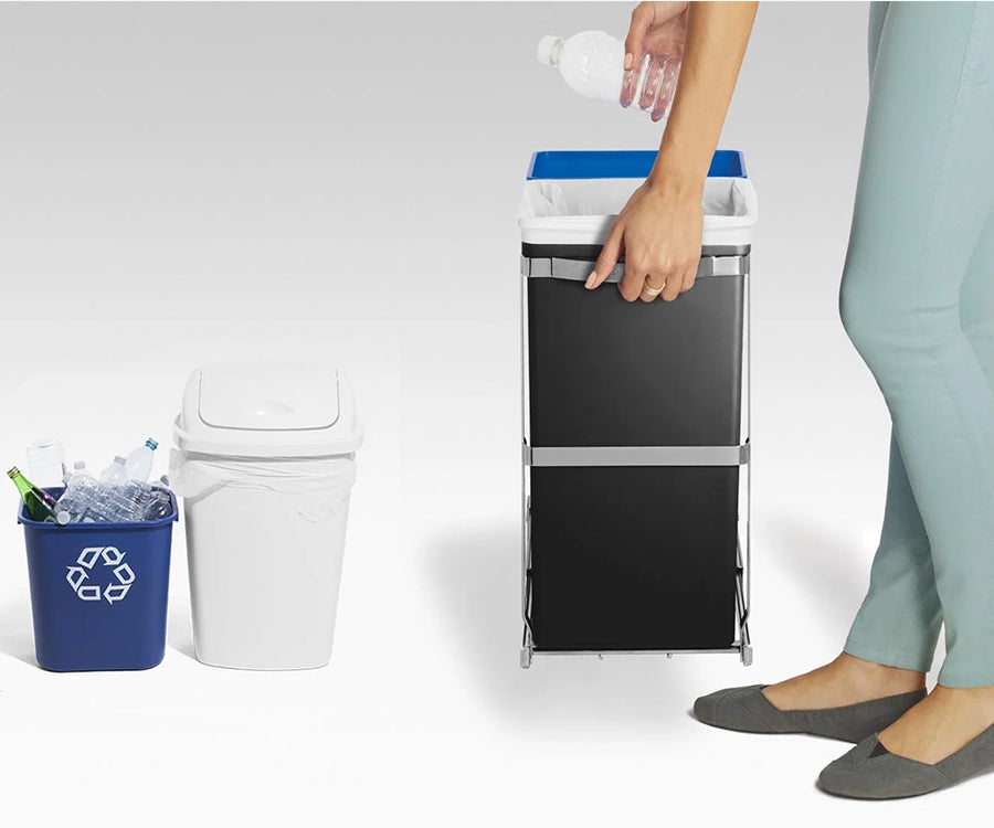 Our dual compartment option neatly sorts your trash and recyclables in this dual-bucket can. One side for trash, one side for easy disposal of recyclables. It makes eco-friendliness very space-efficient.